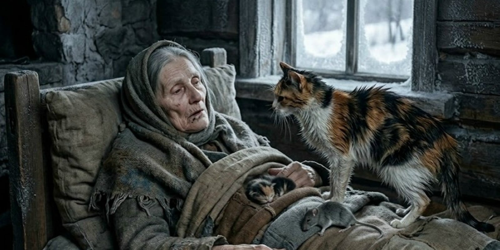 Не котятам. Не матери, которая сама была голодна. Ей — старой женщине, у которой уже не осталось сил выйти из дома, развести огонь, попросить помощи, добыть хоть что-нибудь.