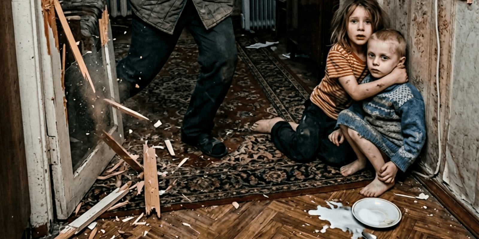 Моя дочь Аня сидела на полу в углу — грязная, в той же одежде, что, судя по всему, носила уже несколько дней. Она держала на руках пятилетнего Колю. Он не плакал — просто смотрел в одну точку пустыми глазами. Его рёбра выступали под майкой.