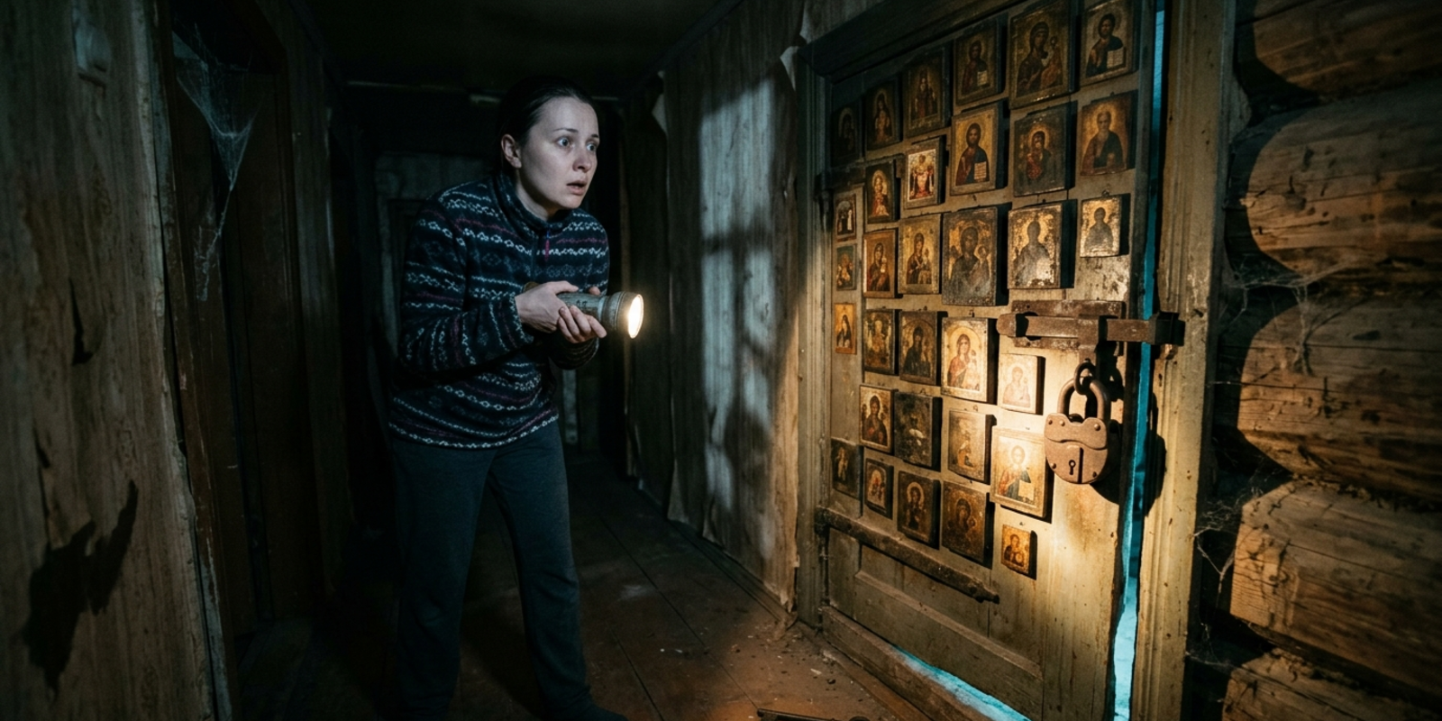 И тут я увидела иконы. Десятки глаз смотрели на меня со стен. В лунном свете, падавшем из окна коридора, они казались живыми. И мне показалось — или не показалось — что одна из икон качнулась. Совсем чуть-чуть, будто кто-то толкнул её изнутри стены.